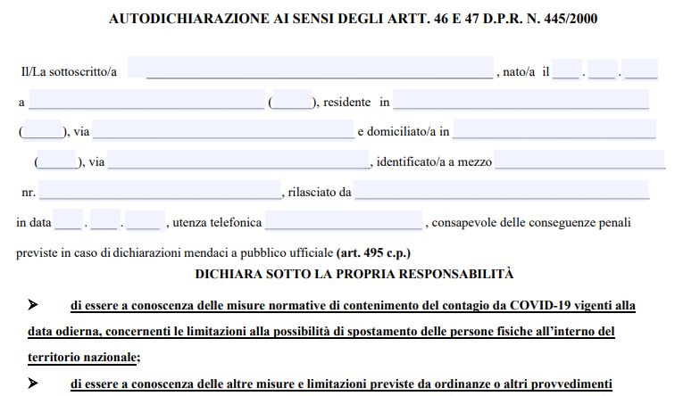 Sul sito della Regione Lazio è on line il modulo di autocertificazione che potrà essere esibito durante i controlli di polizia a giustificazione degli spostamenti nella regione durante gli orari in cui è stata adottata l’ordinanza di divieto degli spostamenti: dalle 24 alle 5.