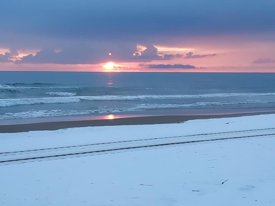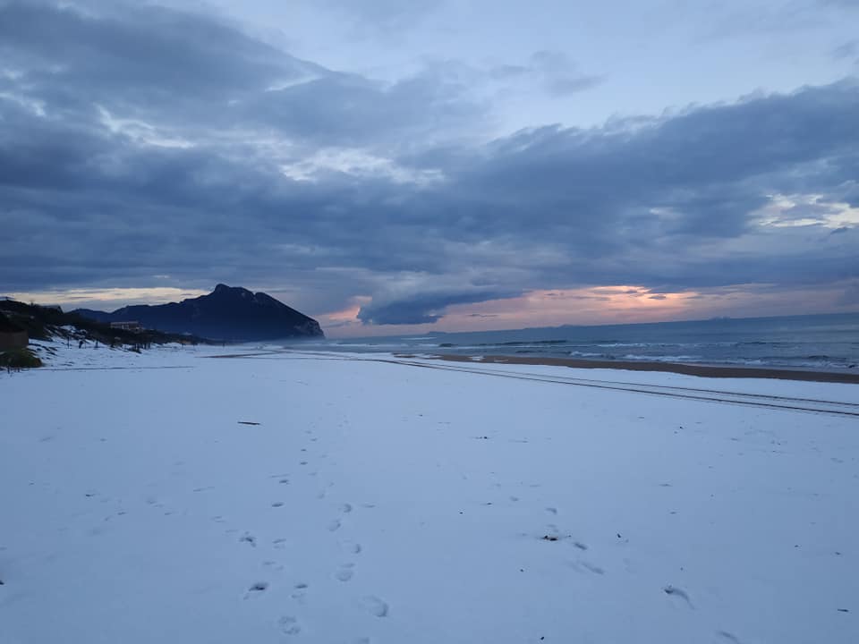 Ventuno Lustri, Storie di Pietre ed Acqua, Dolcissimo Amore dagli Occhi Grandi, Questo piatto di Grano, La Palude Rossa… Forse non basta un rosario per sgranare tutti i libri pubblicati dalla casa editrice Atlantide di Dario Petti. Nelle sue mani la storia del territorio pontino e della sua gente, di nascita o capitata per caso o per un insolito destino. Oggi l’editore ci ha stupito ancora, senza parole, ma con pochi scatti, postati su Facebook. Raccontano la spiaggia di Sabaudia, ai piedi di Circe, imbiancata da una abbondante ma “normale” grandinata di aprile. I colori sono impagabili, il rosso di un tramonto lontano nascosto dalle nuvole di una perturbazione indecisa se andare via o permanere a guastare il fine settimana, e il bianco a coprire l’oro giallo delle dune. Che dire? Grazie Dario, per averci regalato l’attimo, prima che un soffio di vento o una pioggerella dispettosa rovinasse lo spettacolo.