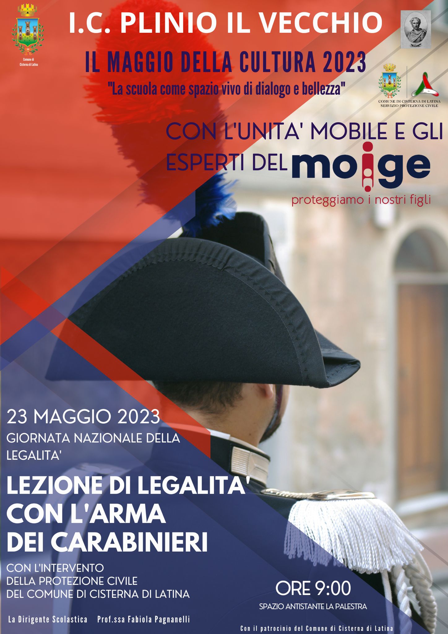 Si affronteranno il fenomeno e le ripercussioni del cyberbullismo, con gli esperti del Moige; con il Tenente Angelo Sgueglia, comandante della Sezione Operativa dei Carabinieri di Aprilia, si rifletterà sul valore della legalità e sugli eroi nella lotta alla mafia, come Giovanni Falcone e Paolo Borsellino, e dell’Arma dei Carabinieri, come il generale Dalla Chiesa e Salvo D’Acquisto.