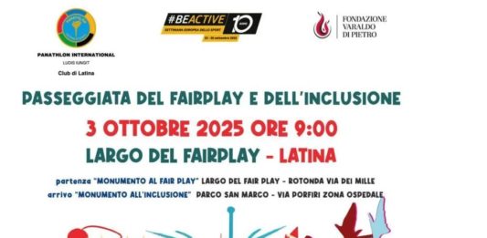 Latina, torna la Passeggiata del Fairplay e dell’Inclusione: domani la quinta edizione