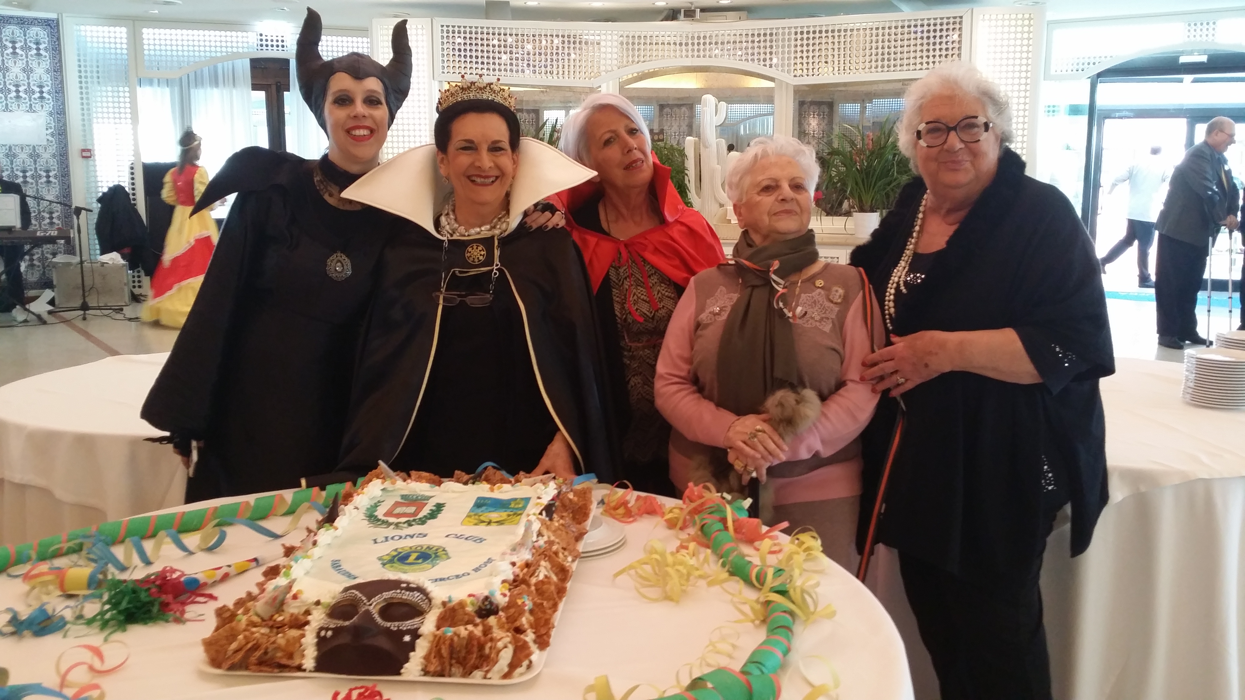 A ritmo di musica e al passo di “inediti” balli, la festa del Carnevale Lions si è conclusa con il taglio della torta e la premiazione delle migliori mascherine, tra cui la Malefica, malvagia strega della Bella Addormentata nel bosco interpretata da Rosa Bellini, e la simpatica topolina Minnie interpretata da Silvia Pizzicaroli.
