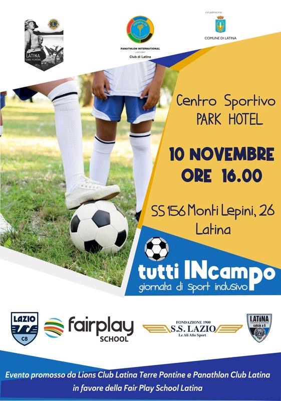 L’evento si chiama “Tutti in Campo” e si svolgerà il 10 novembre presso il Centro Sportivo del Park Hotel, in Via Monti Lepini 156, alle ore 16.00.