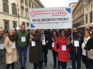 L’ordine dei commercialisti di Latina in prima linea contro il decreto fiscale ha preso parte con una rappresentanza degli iscritti pontini alla manifestazione del 14 dicembre a Roma.