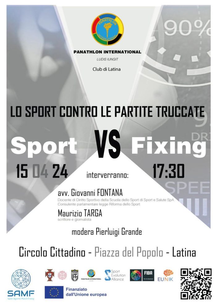 Il 15 aprile alle ore 17.30, presso la Sala Conferenze del Circolo cittadino “Sante Palumbo” in Piazza del Popolo (Latina), si terrà il convegno “Sport Against Match-Fixing” (SAMF), dedicato alla lotta contro le partite truccate nello sport.