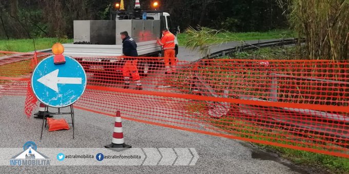 Permane la chiusura della strada provinciale Ausente, nel tratto compreso tra i chilometri 17 e 18, per smottamenti delle alture circostanti.