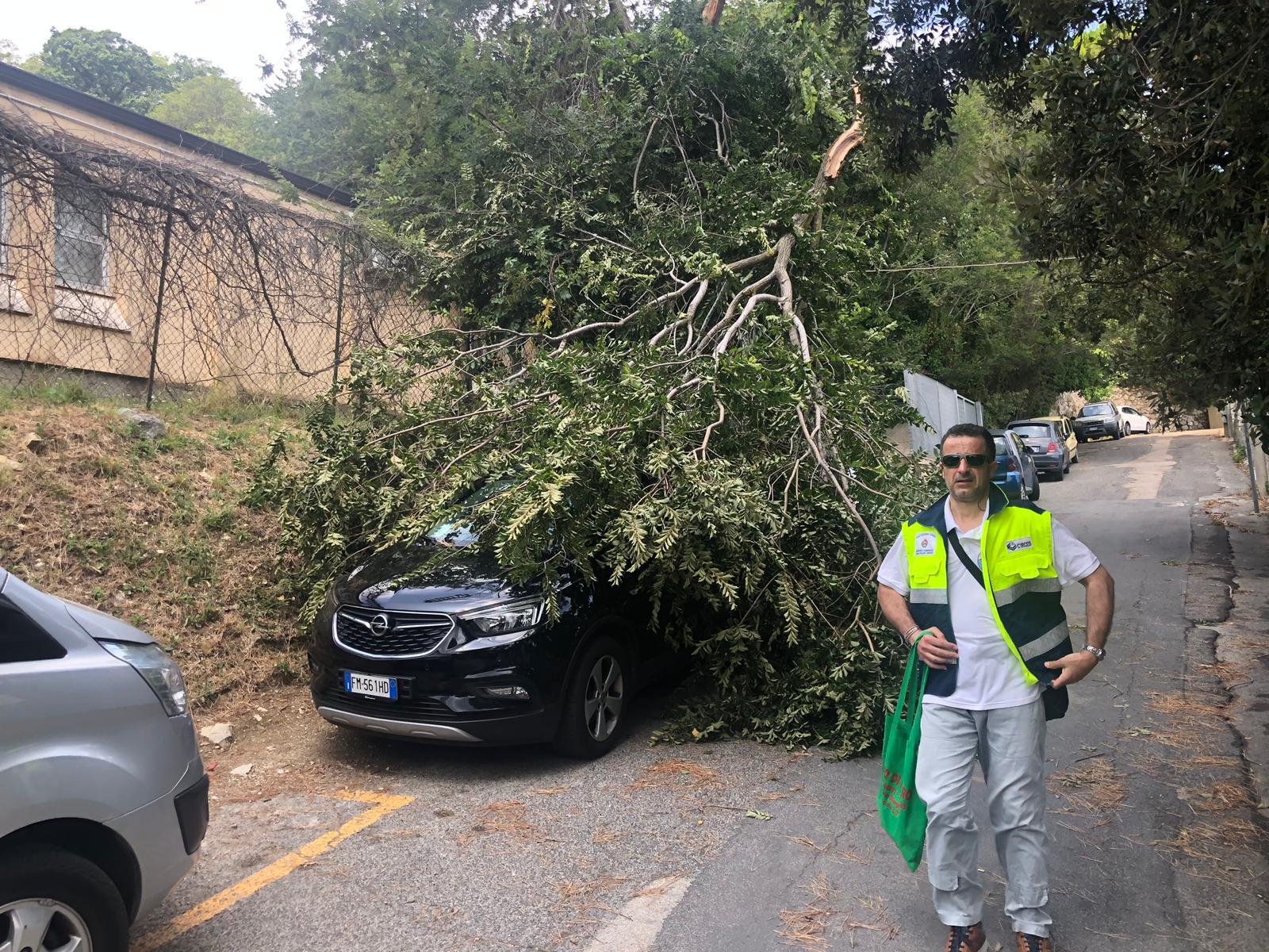 Questa stamattina gli operatori del comune e della protezione civile, assistiti dai vigili del fuoco sono intervenuti su via Tiberio Imperatore per il taglio dei rami, mentre una ditta incaricata dal comune su via Gino Rossi.