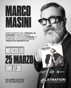 Un po’ di Sanremo anche a Latina. Domani Marco Masini arriva al centro commerciale Latina Fiori con il suo nuovo album “Perfetto Imperfetto”.