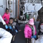 “Sono di cuoio duro – ha sottolineato, tra l’altro, il Contrammiraglio Vitiello – ma non ho potuto non commuovermi quando ho visto tanti migranti salire a bordo e baciare il ponte di volo della nave, piangere, venirci incontro per abbracciarci, gridando libertà e grazie Italia. In particolare, mi ha colpito una donna che abbiamo salvato assieme alle sue due piccole bambine: era stremata e quando ha capito di essere in salvo, è crollata a terra singhiozzando, mentre le due bimbe iniziavano a giocare con i nostri marinai che, per farle divertire, avevano gonfiato un guanto di lattice trasformandolo in palloncino. Sono state queste immagini a fornirci l’energia necessaria per andare avanti, ma soprattutto, osservando il volto di quei migranti, ho compreso quanto siamo fortunati a vivere nel nostro grande Paese. Loro lavorano una vita, poi vendono o abbandonano tutto e pagano migliaia di dollari per affrontare un viaggio massacrante, nell’unica speranza di una vita migliore”.