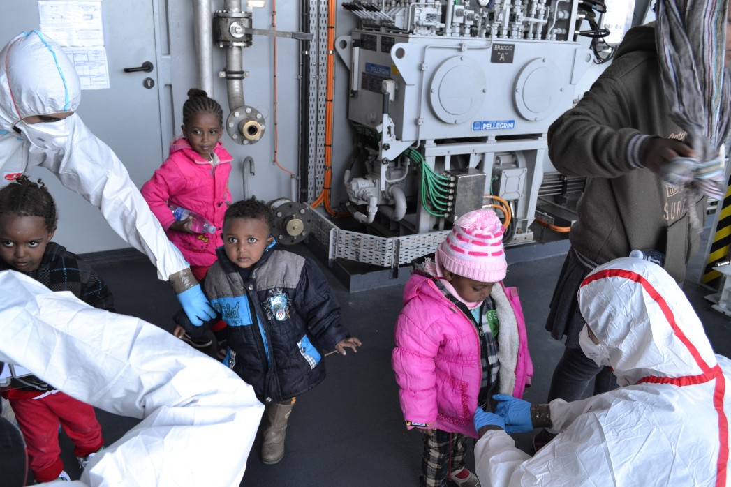 “Sono di cuoio duro – ha sottolineato, tra l’altro, il Contrammiraglio Vitiello – ma non ho potuto non commuovermi quando ho visto tanti migranti salire a bordo e baciare il ponte di volo della nave, piangere, venirci incontro per abbracciarci, gridando libertà e grazie Italia. In particolare, mi ha colpito una donna che abbiamo salvato assieme alle sue due piccole bambine: era stremata e quando ha capito di essere in salvo, è crollata a terra singhiozzando, mentre le due bimbe iniziavano a giocare con i nostri marinai che, per farle divertire, avevano gonfiato un guanto di lattice trasformandolo in palloncino. Sono state queste immagini a fornirci l’energia necessaria per andare avanti, ma soprattutto, osservando il volto di quei migranti, ho compreso quanto siamo fortunati a vivere nel nostro grande Paese. Loro lavorano una vita, poi vendono o abbandonano tutto e pagano migliaia di dollari per affrontare un viaggio massacrante, nell’unica speranza di una vita migliore”.