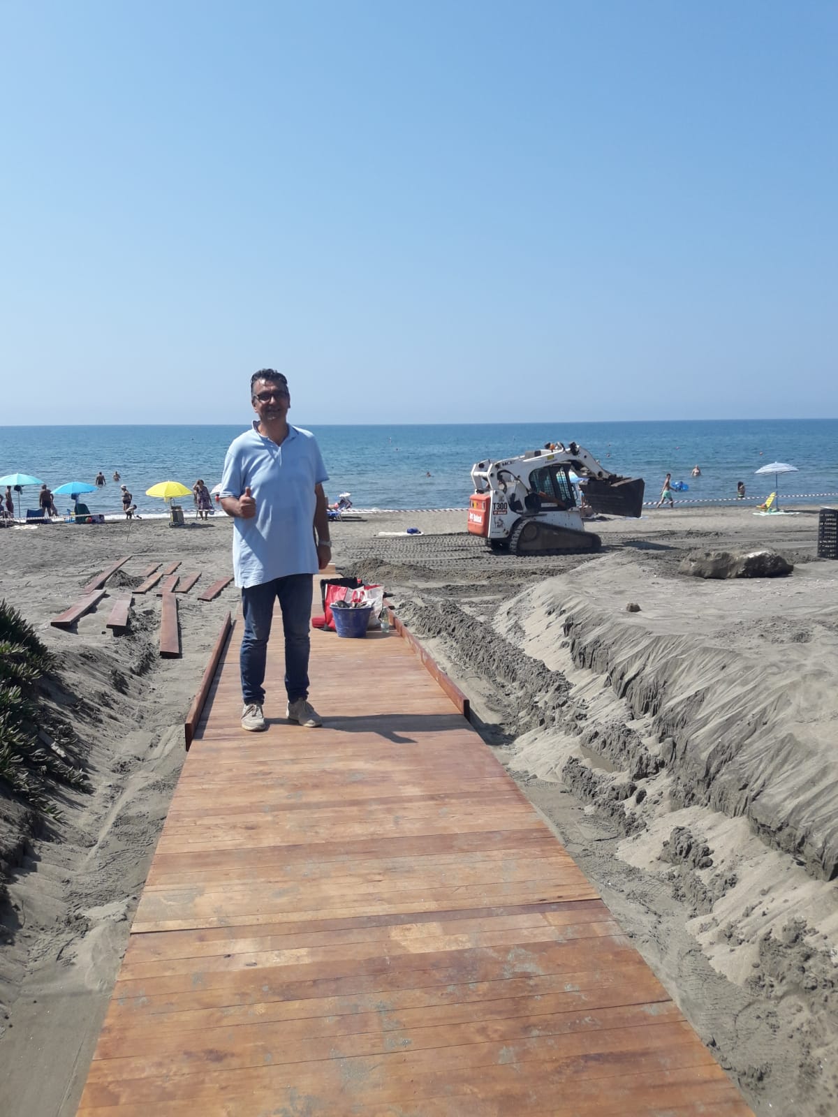 Sono intanto iniziati – fanno sapere dal Comune – i lavori per installare, all’altezza dello stabilimento Enel, sul lungomare, la struttura per l’accesso alla spiaggia dei diversamente abili donata al Comune da un privato cittadino, il signor Vincenzo Armeni. L’offerta, accettata con delibera di giunta n. 301 del 26 luglio, consiste nella fornitura e nell’assemblaggio dei moduli in legno per la realizzazione della passerella con pedane che consentirà di raggiungere il mare a chi ha difficoltà di deambulazione. La struttura avrà una superficie complessiva di circa 90 metri quadri. I lavori per il suo posizionamento stanno proseguendo oggi, sotto la supervisione dei tecnici del Servizio Ambiente del Comune”.