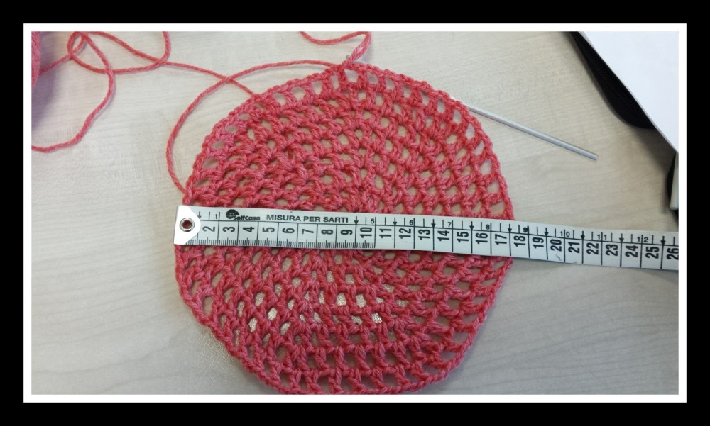 Questa misura ci servirà per capire quanto dovrà essere grande il cerchio iniziale del nostro cappellino, e quindi finché si deve proseguire con gli aumenti.