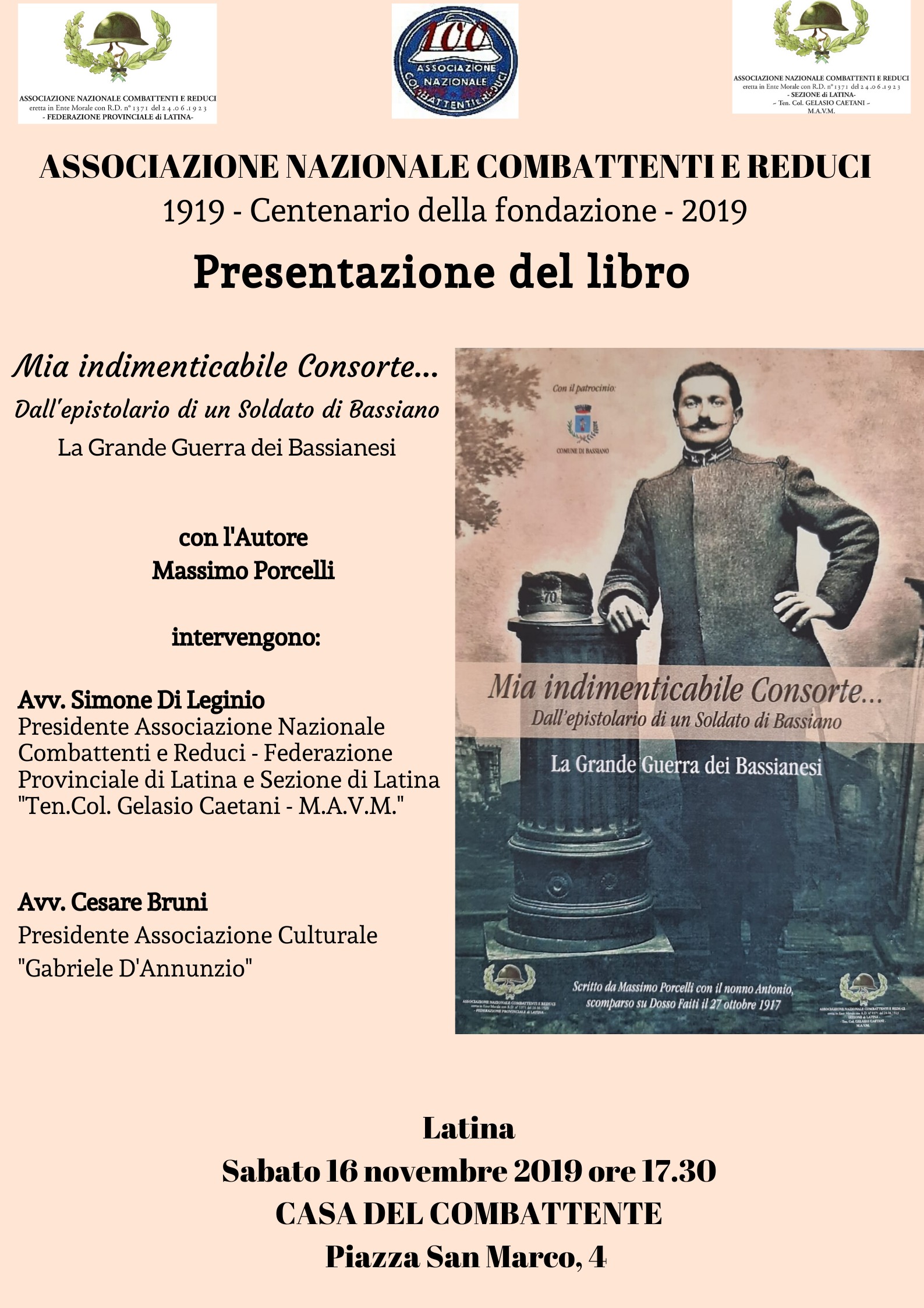 “Mia indimenticabile Consorte”, il libro del contrammiraglio Massimo Porcelli, presentato lo scorso sabato a Bassiano, sarà oggetto di un nuovo incontro pubblico, ad ingresso libero, in programma per il 16 novembre a Latina.