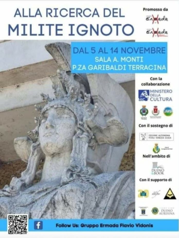 Alle ore 10.30 inaugurazione della mostra proposta dal Gruppo Ermada VF “Alla ricerca del Milite Ignoto” presso la Sala Comunale Appio Francesco Monti; a seguire incontro “PARLIAMONE PER RICORDARE” sulla tragedia della Grande Guerra con la presentazione, all’interno del programma di Duino&Book, del libro “Mia indimenticabile consorte” con l’autore, il Contrammiraglio Massimo Porcelli.
