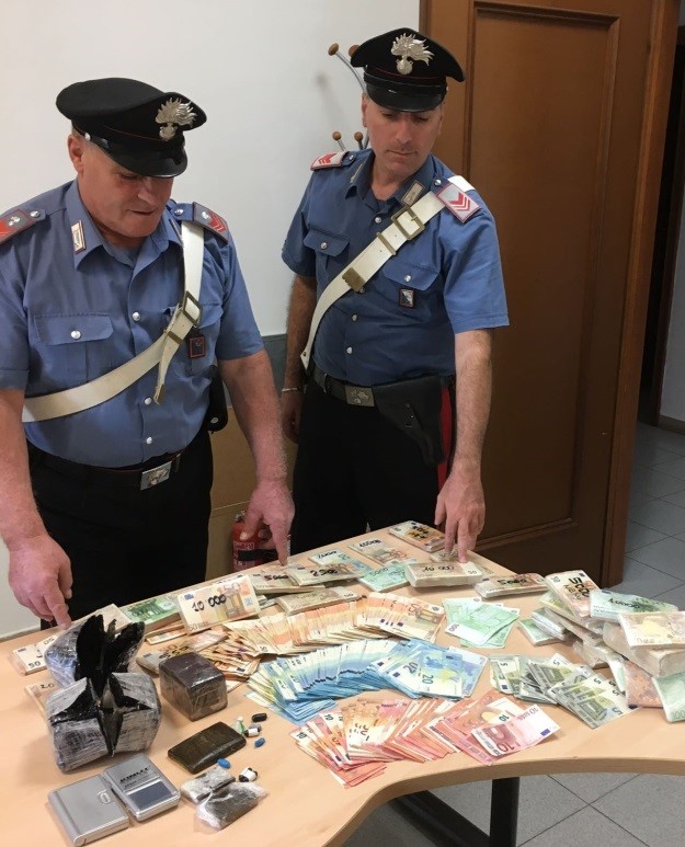 Un 37enne di Minturno è stato arrestato dai carabinieri della stazione di Scauri per detenzione e spaccio di stupefacenti. A seguito di perquisizione domiciliare è stato trovato in possesso di 200mila euro in banconote di vario taglio e sette etti di hashish, suddivisi in sette panetti, nonché 10 grammi di cocaina, due bilancini di precisione e altro materiale atto al confezionamento della droga. L’arrestato è stato portato in carcere.