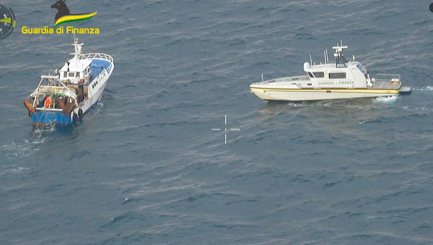 Minturno, sorpresi a pescare a strascico in acque vietate: bloccati dalla Finanza