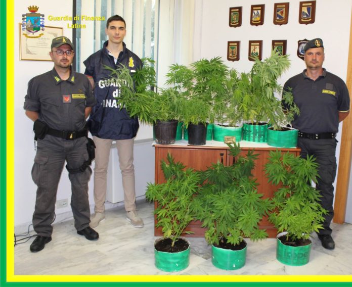 Le Fiamme Gialle di Formia, con l’ausilio dell’Unità Cinofila “Bam” hanno individuato un uomo di anni 47 M.B. nei pressi della stazione ferroviaria, intento ad occultare all’interno di una custodia in plastica, un trancio di sostanza stupefacente del tipo hashish, avente un peso complessivo di circa 5 grammi. I Finanzieri di Formia hanno quindi deciso con l’impiego di una pattuglia “117”, di recarsi presso il domicilio dello stesso sito in Minturno. La perquisizione domiciliare ha permesso di rinvenire un panetto di hashish del peso di quasi 100 grammi, con impresso il logo “Best 1”, usato per contraddistinguere il fornitore e la qualità dello stupefacente, nonché 14 piante di canapa indiana di quasi un metro di altezza e del peso complessivo di circa due chili. Tutta la sostanza stupefacente individuata è stata sottoposta a sequestro, mentre il 47enne M.B. è stato denunciato alla Procura della Repubblica di Cassino per detenzione ai fini di spaccio di sostanze stupefacenti.