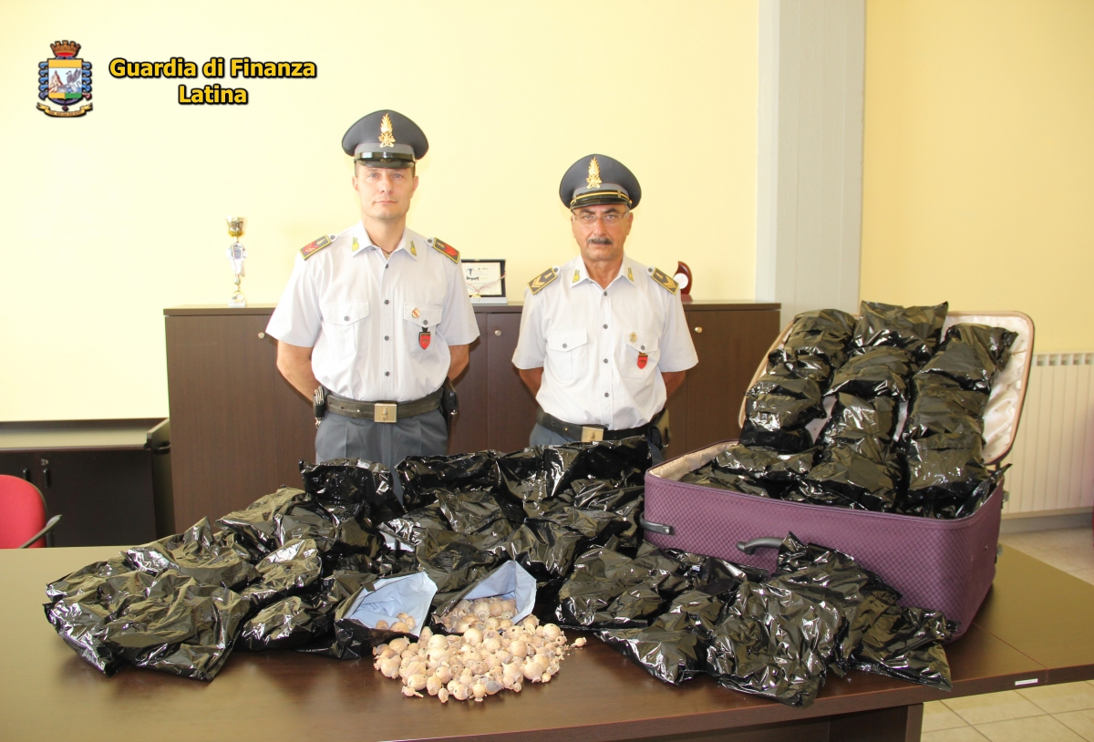 I finanzieri della compagnia di Fondi, insospettiti, hanno controllato il soggetto che portava al seguito una valigia di grandi dimensioni.