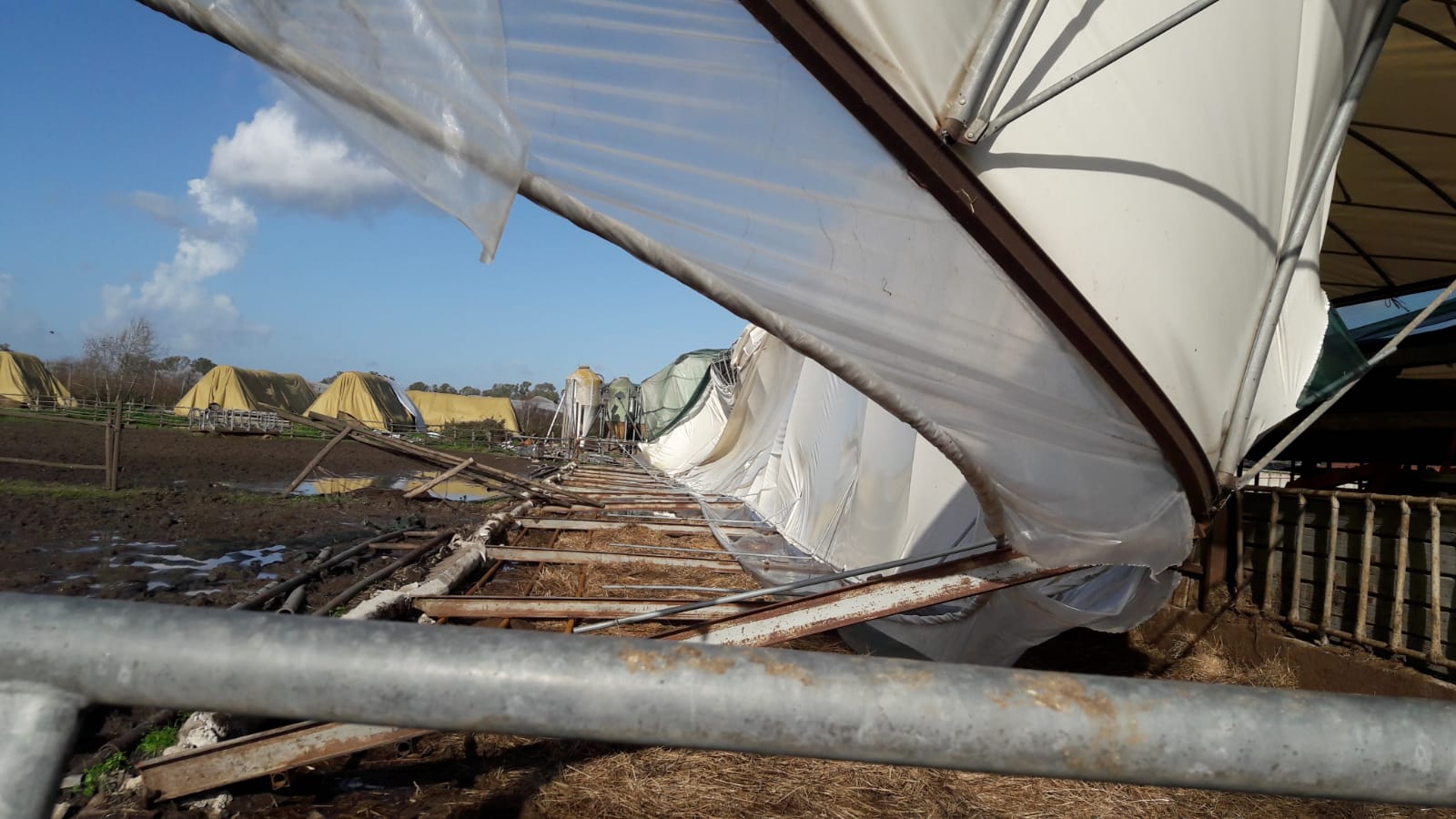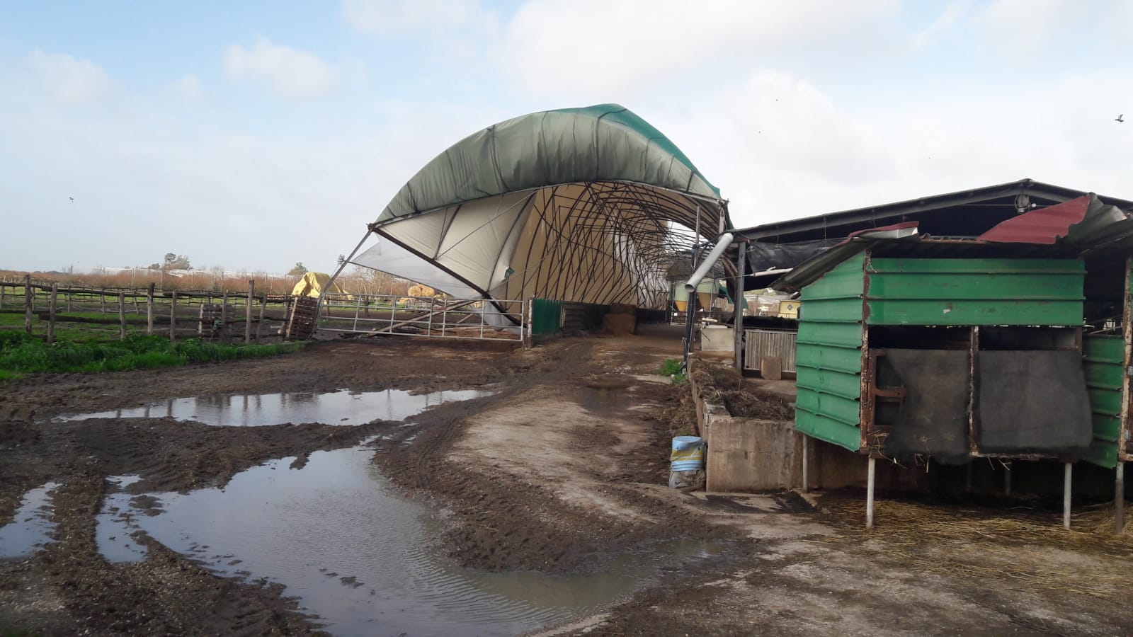 Da ieri mattina alle 5 senza corrente e con le mucche senza più un tetto: in ginocchio l’azienda agricola Lola di Alveti&Camusi alle porte di Latina, nota per il suo caseificio.