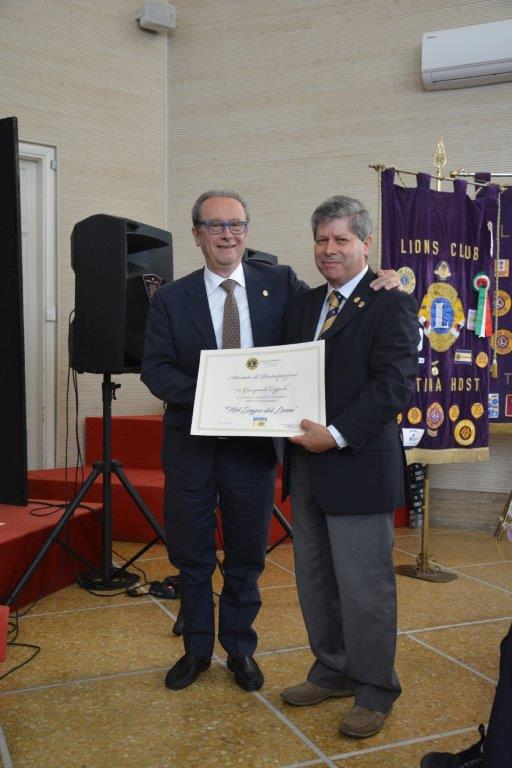 L’evento è stato dedicato ad un grande amico Lions che non è più su questa terra ma che è presente con i suoi insegnamenti e precetti: il dottor Carlo Padula, past governatore del distretto 108-L Italia. La targa alla memoria di Padula, fondatore del Lions Club di Fondi e direttore della rivista Lionismo, è stata consegnata alla moglie Maria.
