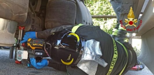 Santi Cosma, 51enne resta incastrato con una gamba sotto al camion