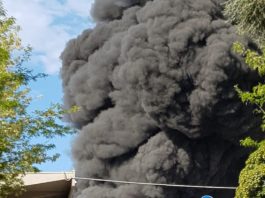 Aprilia sotto la cappa della nube nera proveniente dall’incendio della EcoX di Pomezia, città in allarme