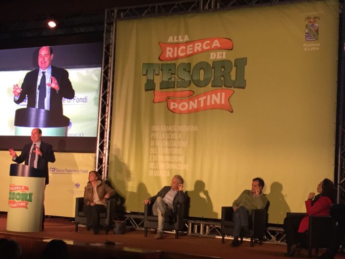 Tour di Nicola Zingaretti a Latina. Il primo impegno per il presidente della Regione Lazio gli ha fatto varcare l’ingresso del liceo scientifico “G.B. Grassi” per la presentazione del progetto “Scuola, Informazione e Territorio”, rivolto a tutte le scuole della provincia pontina. Si tratta di un’iniziativa della cooperativa Giornalisti Indipendenti che edita Latina Oggi ed è finalizzato a far conoscere ai ragazzi i luoghi e la storia del territorio anche attraverso l’aiuto di un album di figurine di 148 pagine distribuito gratuitamente.