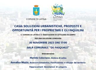 Appuntamento al 30 novembre, alle ore 17, presso la sala "De Pasquale" del Comune di Latina per il convegno intitolato "Casa: soluzioni urbanistiche, proposte...