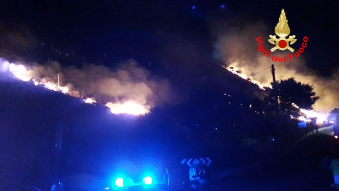 Incendio a ridosso del paese di Sonnino. Le fiamme, la scorsa notte, hanno lambito le case e sono state ore durissime per vigili del fuoco e protezione civile, che hanno potuto operare solo via terra per via del buio. Sul posto è rimasto anche il 118 a scopo precauzionale.