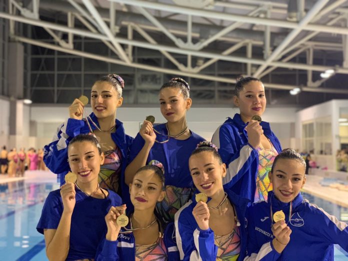 Ottimo inizio per le sincronette dell’ASD Aquaria di Pontinia che conquistano subito l’oro con la squadra composta da Valeria De Andreis, Lavinia Fiori, Helena Iacovacci, Aurora Iacovacci, Roberta Maiorino, Esmeralda Gasparutti e Gaia Belato. Sul podio anche la solista Valeria De Andreis che riporta a casa un argento, grazie anche alla grinta, al carattere ed al gran carisma dimostrato in performance.