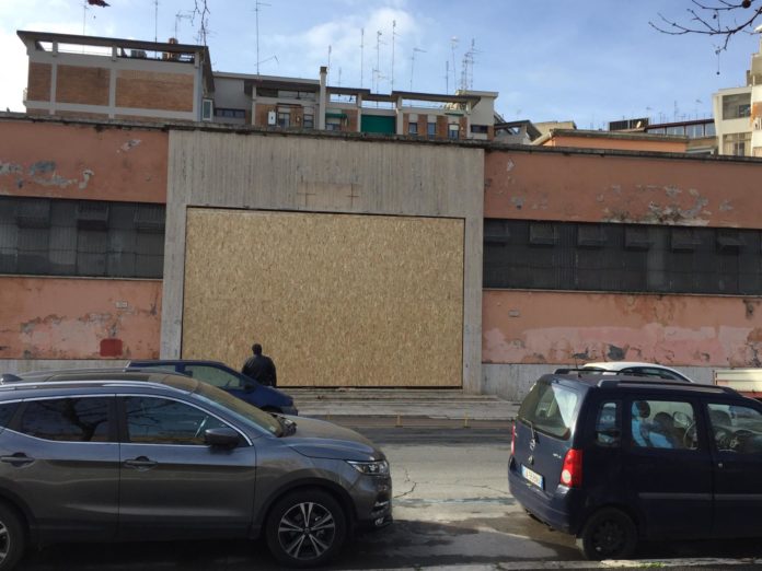 Un muro nel cuore di Latina. E’ stato eretto davanti all’ingresso della vecchia sede del mercato coperto, per impedire ai clochard di dormire sotto il portico. Il “buco” prima era stato occupato, allo stesso scopo, con dei grossi vasi e ora è stato chiuso con un pannello di truciolato. Forse a breve il legno compresso sarà sostituito da una vetrata come preannunciato qualche mese fa nel corso di una commissione consiliare. Ma al momento la situazione è questa: ingresso sigillato con un pannello. I senzatetto se vogliono possono bussare al dormitorio gestito dalla coop Tre Fontane, se non vogliono – come accaduto in passato – andranno da altra parte e non certo in pieno centro dove la situazione di degrado resta sotto gli occhi di tutti.