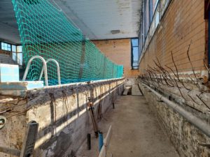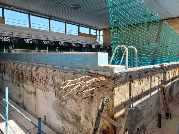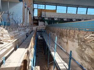 In parallelo, si stanno effettuando la bonifica di alcune parti impiantistiche e la pulizia dei locali seminterrati. Nei prossimi giorni saranno posizionati puntelli, banchinaggio, nuova armatura, travetti e pignatte per la realizzazione in opera della canalina. Conclusa questa fase, riprenderanno anche le opere previste dal progetto “M5.2.3 Rigenerazione piscine comunali”, che interessa l’impianto natatorio e prevede l’innalzamento del fondo vasca, la demolizione della tribuna e la sostituzione della copertura della piscina coperta.
