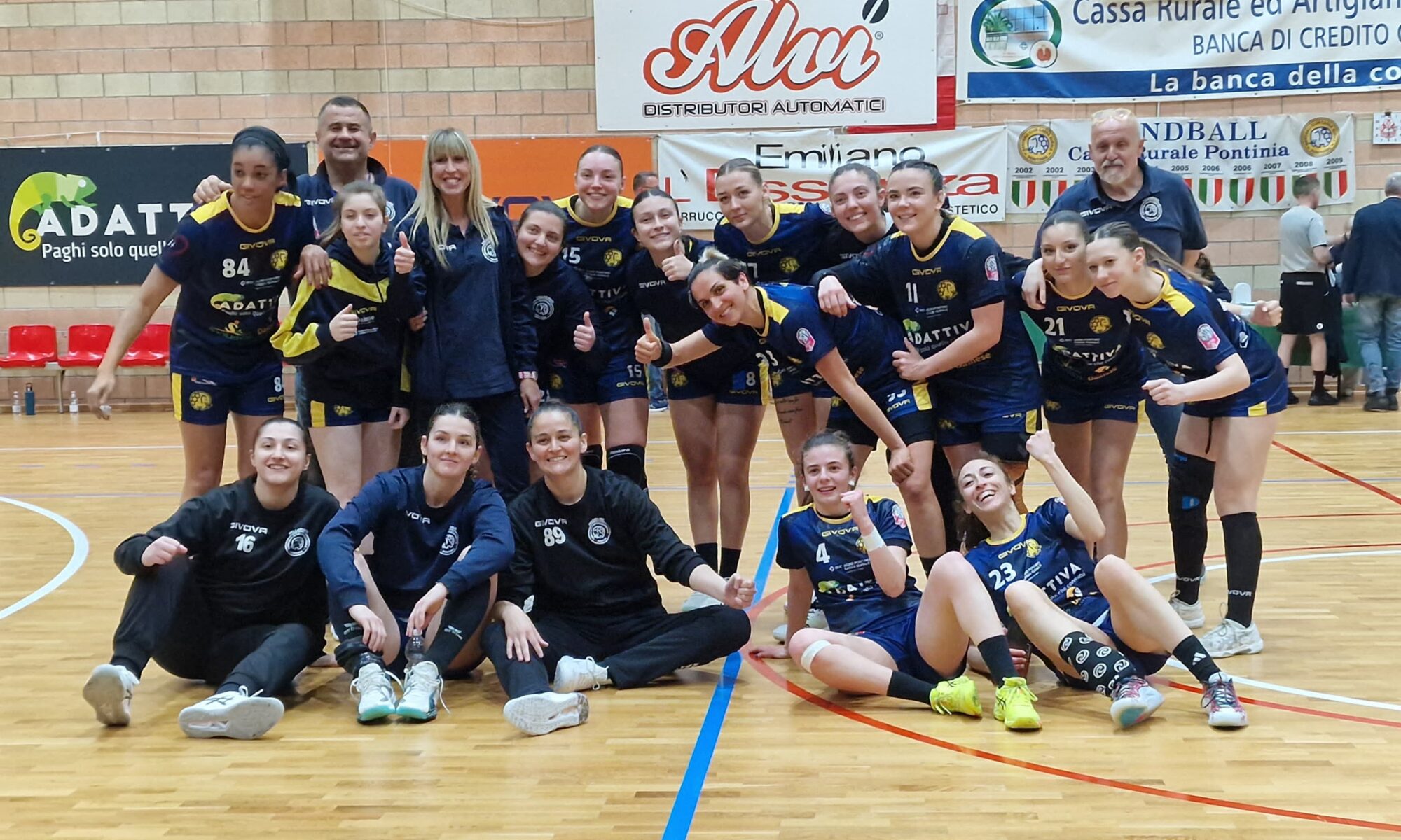 L’Adattiva Pontinia chiude in bellezza la regular season del massimo campionato di pallamano femminile, imponendosi con autorità anche a Padova. Le ragazze di coach Nikola Manojlovic hanno superato in trasferta il Cellini con il punteggio di 31-23, centrando così la diciannovesima vittoria stagionale su 22 incontri disputati. Con questo successo, il club del presidente Mauro Bianchi chiude il campionato al secondo posto con 38 punti e si prepara a vivere da protagonista i play-off scudetto.