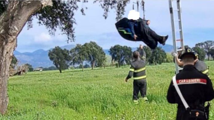 Un mutamento repentino del vento in fase di discesa, questa molto probabilmente la causa dell’incidente capitato ad un parapendista che, durante la fase di atterraggio, è rimasto incastrato tra i rami di un albero.