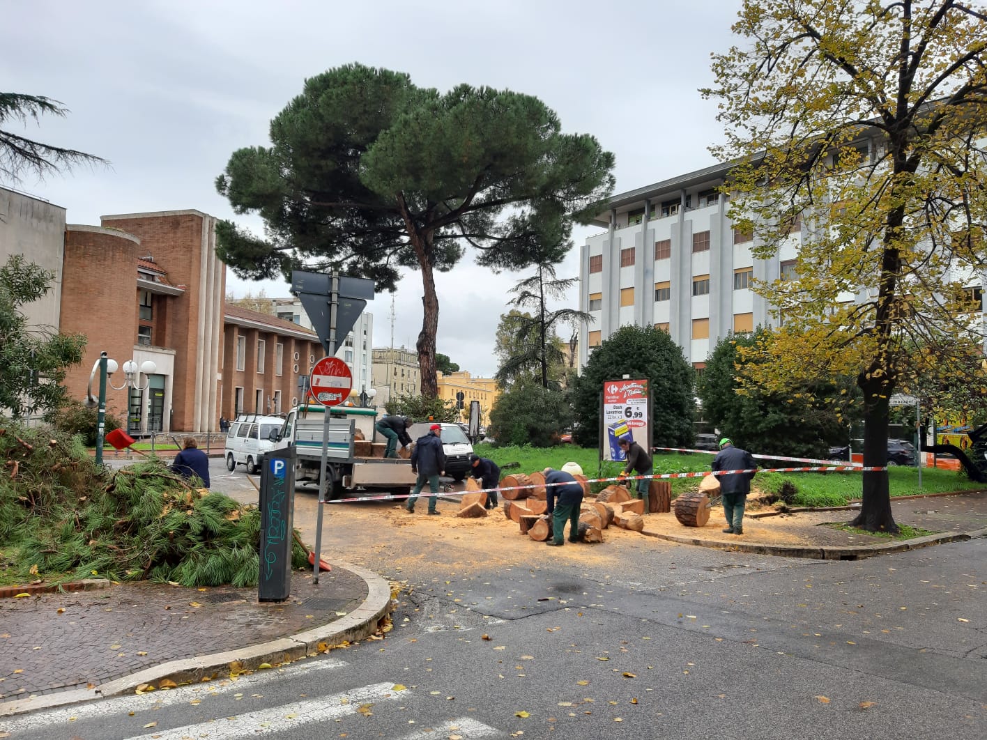 Il maltempo non frena su Latina e provincia: oltre alla pioggia, sono stati diversi i danni causati dal forte vento, paura nelle prime ore di questa mattina quando un grosso pino è caduto in via Emanuele Filiberto, proprio di fianco alle Poste. Fortunatamente non ci sono state gravi conseguenze poiché a quell’ore non vi erano macchine o persone in transito. Sul posto sono intervenuti immediatamente gli operai del comune che stanno provvedendo a ripulire l’area, dopo l’intervento dei Vigili del Fuoco che hanno tagliato il fusto dell’albero.