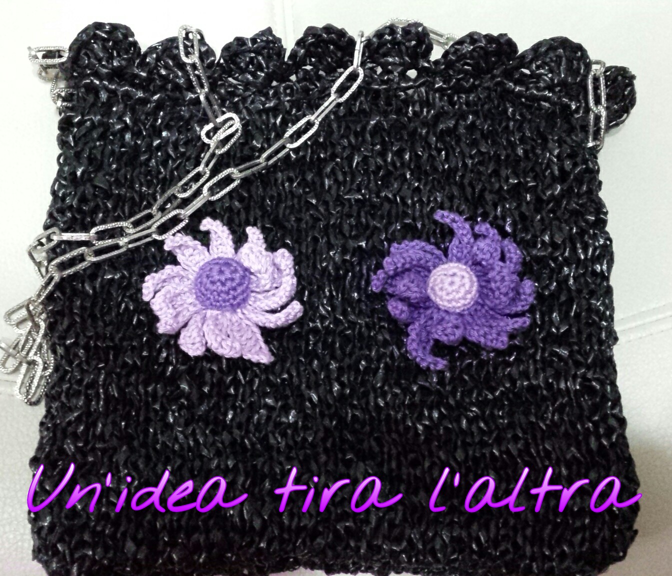Ecco l’ultima nata , in rafia nera e fiorellini di cotone.