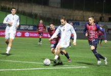 87′- Santacargelo svetta alto su un cross in area e sfiora in area ma colpisce male e la palla va sopra la traversa