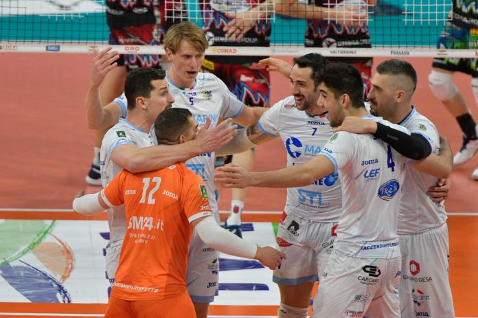 Sir Safety Conad Perugia: Anderson 16, Ricci 2, Dardzans (ne), Travica, Ter Horst (ne), Giannelli 4, Rychlicki 15, Leon 27, Piccinelli (L), Solè 6, Russo (ne), Colaci (L), Plotnytskyi, Mengozzi 2. All.: