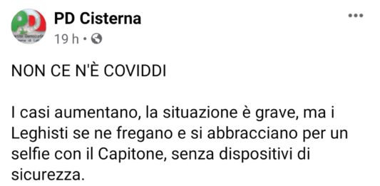 Cisterna: il selfie dei leghisti con Salvini senza mascherina infiamma il PD: “Non ce n’è Coviddi”