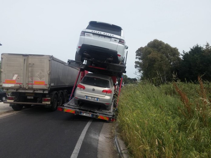 Paura oggi alle 16,30 sulla strada regionale Pontina, all’altezza della Migliara 46. Una bisarca che viaggiava in direzione Sud, sopraggiunta alla rotonda, si è pericolosamente inclinata a seguito della rottura del giunto. Bravo l’autotrasportatore alla guida, che ha saputo evitare il peggio, ovvero il ribaltamento del mezzo rimasto in bilico a destra della corsia. Sul posto è tempestivamente arrivata la Polizia Stradale, mentre il traffico ha subito pesanti rallentamenti con una lunga coda di veicoli che procedevano da Roma verso Terracina. Fortunatamente l’episodio non ha comportato danni a cose o persone.