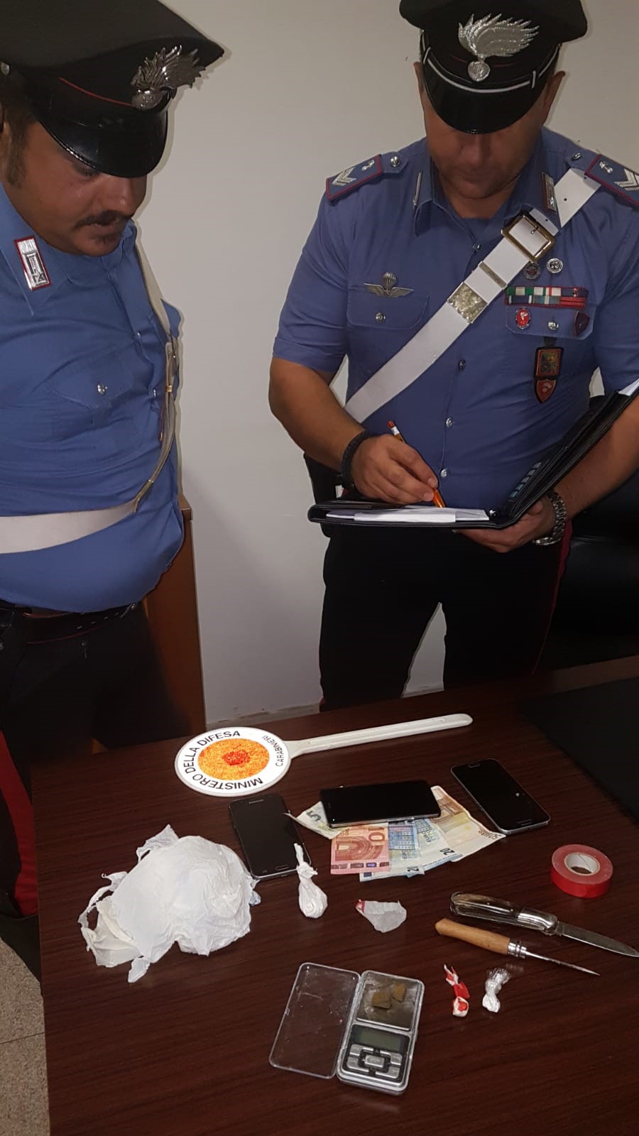 Quarantenne ai domiciliari sorpreso a spacciare cocaina sul cancello di casa. E’ accaduto ieri sera a Pontinia: nuovo arresto per A.A.. I carabinieri del Norm di Latina dopo averlo pizzicato mentre cedeva una dosa in cambio di 30 euro hanno effettuato una perquisizione domiciliare rinvenendo sostanze da taglio, un bilancino di precisione, due coltelli, due telefoni cellulari, 2,7 grammi di hashish e 0,7 grammi di cocaina, materiale per il confezionamento della droga. Il tutto è stato posto sotto sequestro insieme alla somma di 125 euro in contanti ritenuta provento di spaccio. Il 40enne è stato arrestato e ristretto nelle camere di sicurezza in attesa della direttissima.
