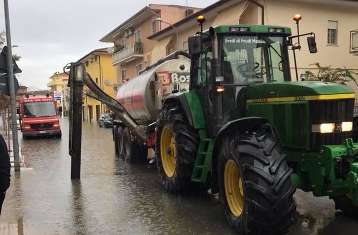Dai gommoni… ai trattori. Ed è stato proprio grazie ai mezzi agricoli dotati di piccole pompe che l’acqua per le strade del centro di Pontinia, trasformatesi in corsi d’acqua navigabili, è stata in gran parte portata via. Il contributo offerto da un gruppo di imprenditori agricoli, che si è messo a disposizione del Comune, della protezione civile e dei vigili del fuoco, è stato davvero risolutivo: l’acqua aspirata è stata poi scaricata nel fiume Sisto che nel frattempo è rientrato negli argini. Sui social sono state pubblicate, da Marco Feudi, le foto che documentano il lavoro svolto. Domani, finalmente, anche i bambini della scuola di Borgo Pasubio torneranno ai propri banchi. Purtroppo però i campi nelle aree rurali restano degli acquitrini. In quanto ai danni, tra raccolti persi, mobili da buttare e quanto altro non resta che fare la conta.