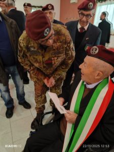 Alla cerimonia, svoltasi sabato 22 novembre, erano presenti il sindaco Eligio Tombolillo, gli amministratori Simone Coco, Valterino Battisti, Maria Rita D’Alessio, Beatrice Milani, Simone Orelli e la Dottoressa Francesca Pacilli. Accanto a loro i rappresentanti del 184° Reparto Comando e Supporti Tattici “Nembo” — il Primo Luogotenente Aldo Scarel e i 1° Luogotenenti Massimiliano Magno e Gianluca Rizzi — insieme al presidente dell’ANPd’I Latina, Ludovico Bersani.