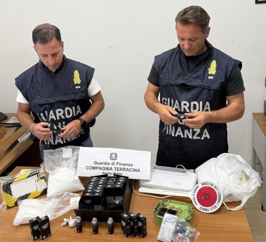 Tre chili di cocaina, 100 grammi di hashish e oltre 40 particolari dispositivi elettronici per l’inalazione di marijuana in forma liquida, un cannabinoide di recente sintetizzazione chimica, sono state sequestrate dai militari della Guardia di Finanza della compagnia di Terracina ad un cittadino italiano, residente a Pontinia e poi tratto in arresto.
