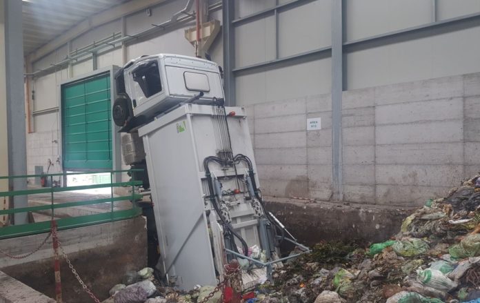 Retromarcia da brivido ieri all’interno degli impianti Sep di Pontinia: un camion è finito in verticale nella vasca di raccolta dei rifiuti umidi, fortunatamente non risulterebbero persone coinvolte. Nell’azienda, finita sotto sequestro il 4 ottobre 2017, sono in corso i test per la verifica dei lavori di adeguamento prescritti al fine del contenimento degli odori. Il mezzo pesante era lì, nella struttura dedicata al pre-trattamento, per versare il quantitativo di rifiuti organici necessari alla prova delle attività di compostaggio. Le foto che pubblichiamo ci arrivano da un nostro lettore e non chiariscono se il sinistro sia attribuibile ad una manovra in retromarcia errata o all’assenza di qualche elemento di protezione della vasca in cui dovevano essere gettati i rifiuti.