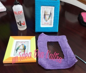 Sono partita da cornici acquistate per pochi euro che ho rivestito con una cornice lavorata a maglia bassa.
