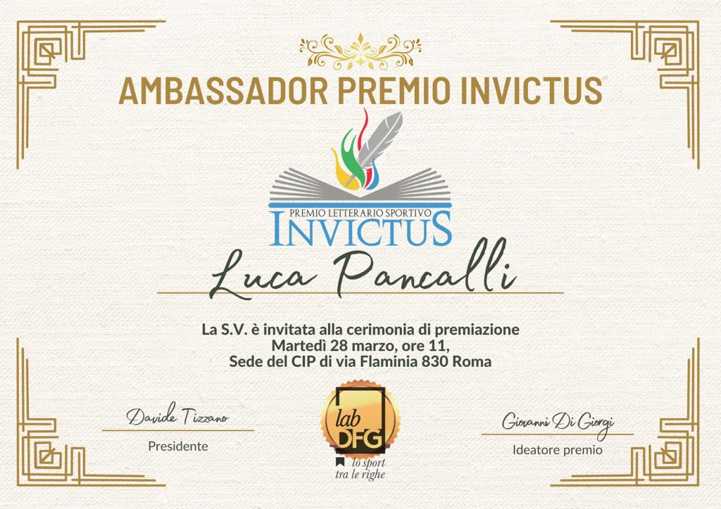 Luca Pancalli, Presidente del Comitato Italiano Paralimpico, sarà il primo “Ambassador” del Premio Letterario Sportivo Invictus, la rassegna culturale promossa dalla casa editrice Lab DFG di Latina giunta alla quarta edizione.