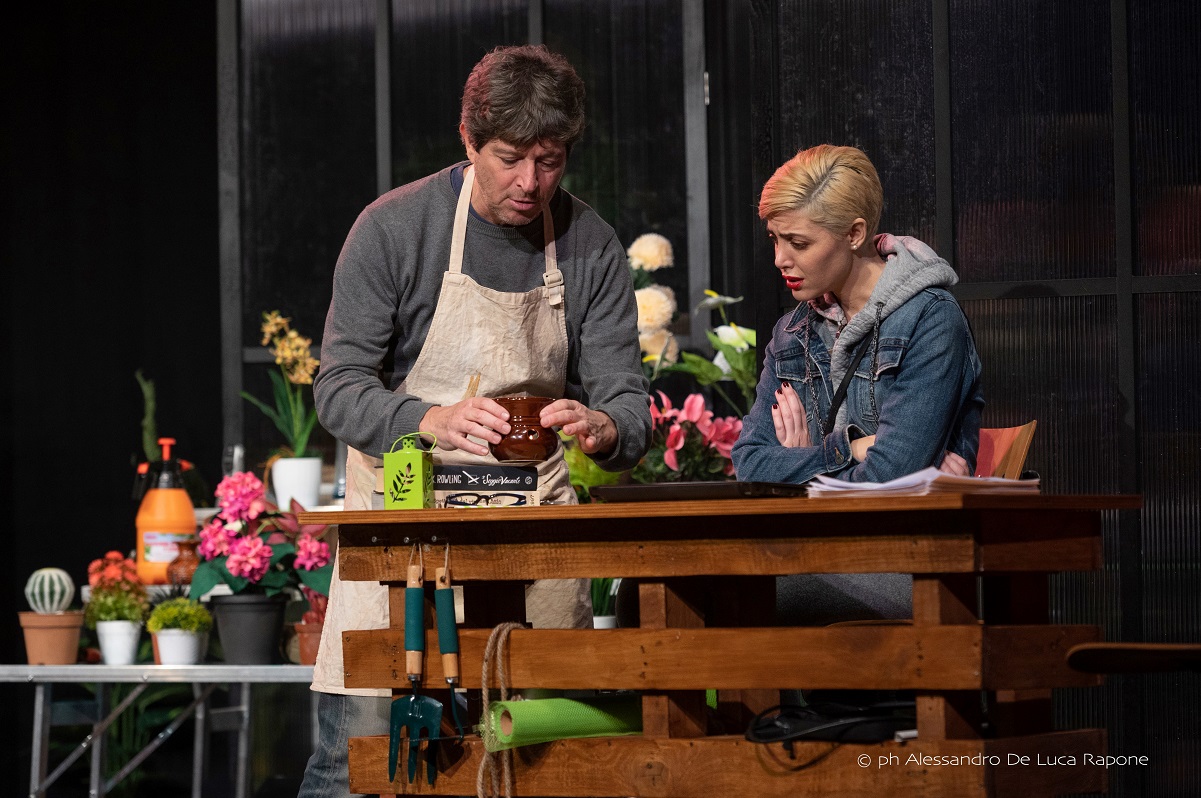 un giardiniere, che vive in un suo regno magico, quello del suo vivaio: il tempo gli viene dettato dalla natura, per lui l’attesa non è sinonimo di frenesia, ma semplicemente fa parte del ciclo biologico. Parla con le piante, canta con loro, ha la possibilità, durante la sua attività manuale, di riflettere sul senso delle cose…un privilegiato. Nel suo mondo piomba all’improvviso Camilla, 40 anni, donna in carriera, sempre al lavoro, anche quando potrebbe essere in pausa; il cellulare, ormai diventato una protuberanza del braccio, è collegato costantemente con mille universi lavorativi diversi. Infine c’è Gianluca, assistente di Giacomo, che a sua volta vive la sua vita cadenzata dai “tempi della routine” impostagli dalla madre. I tre universi si incontrano, si scontrano, si confrontano, fino ad arrivare ad una soluzione finale, che può sembrare anacronistica. Una riflessione sul “passare del tempo” e sull’importanza del confronto con gli altri, che vuole spingere, tra una risata ed un sorriso, a riconsiderare le “priorità” della nostra vita.