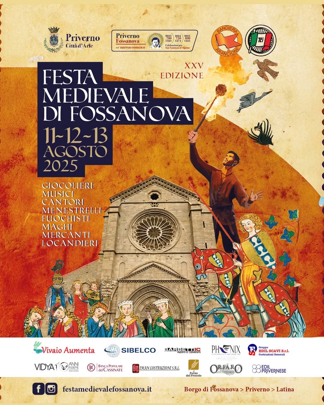 Organizzata dal Comune di Priverno, l’edizione del 2025, ancora dedicata a San Tommaso d’Aquino, di cui questo anno si celebra l’800 anniversario della nascita, la manifestazione si presenta ricca di proposte culturali e di un importante palinsesto, con i rimandi al Medioevo sono curati e rielaborati alla luce della qualità artistica degli spettacoli, della sicurezza e dell’accessibilità dei luoghi, del benessere e del divertimento delle persone.
