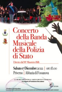 Si esibirà in Concerto, presso l’Abbazia di Fossanova alle ore 18 di sabato prossimo la Banda Musicale della Polizia di Stato. Una bella storia che si ripete, questa volta in occasione delle festività più attese dell’anno, nel ricco calendario di Bianco Priverno 2022, per regalare un ulteriore momento di grande emozione e, con l’occasione, formulare gli auguri per il Natale.