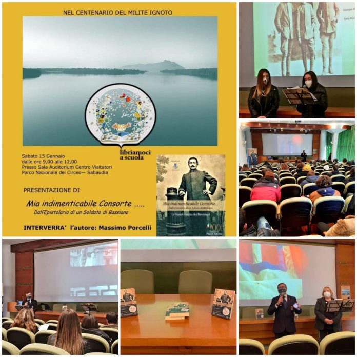 Brani tratti dal libro “Mia indimenticabile Consorte … – Dall’epistolario di un Soldato di Bassiano – La Grande Guerra dei Bassianesi”, sono stati letti da alcuni Studenti nel corso dell’incontro con l’autore – l’Ammiraglio Massimo Porcelli, Vice Presidente dell’Associazione Nazionale Marinai d’Italia, Gruppo di Latina – avvenuto sabato 15 gennaio u.s. presso l’Auditorium del Centro Visitatori del Parco Nazionale del Circeo.